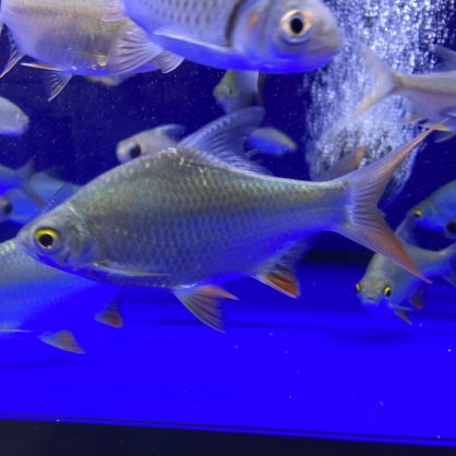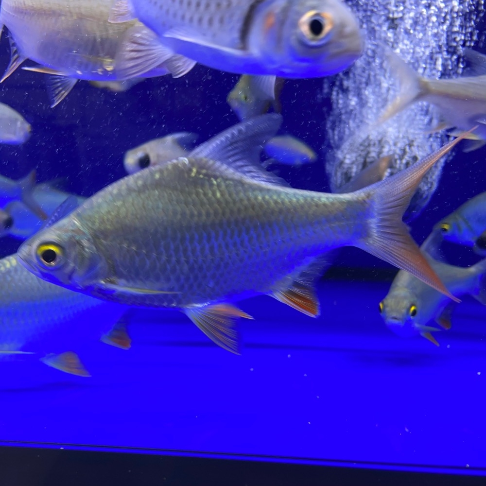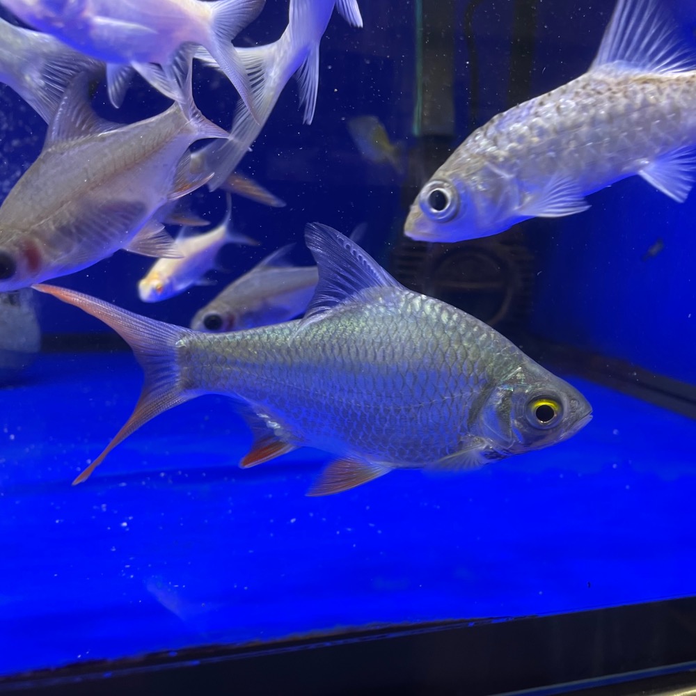 泰國鯽原生於東南亞河系。體色銀白透亮,如金屬薄箔反光;背鰭與尾鰭常帶有鮮紅邊緣,對比明確。體型厚實、游速迅捷,成群活動時畫面整齊有力,是大型展示缸中兼具體量與動態感的經典群游魚。