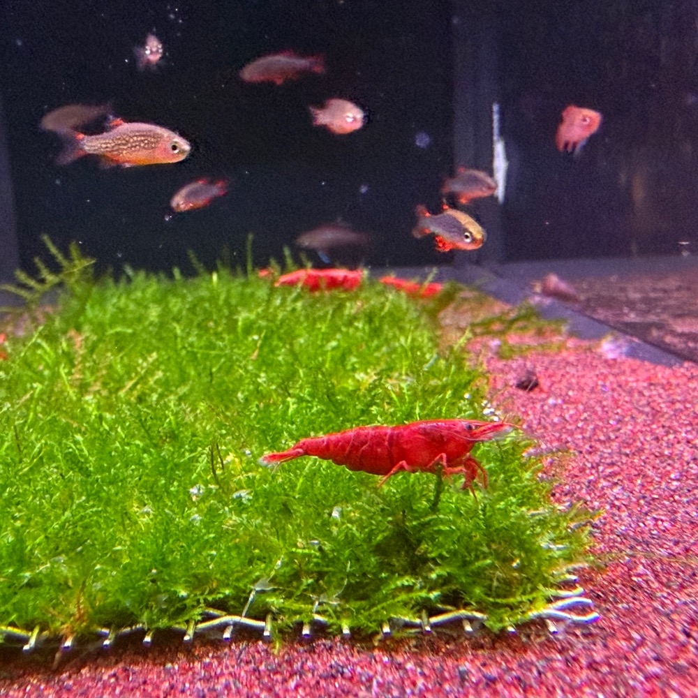 A級極火蝦為觀賞淡水蝦中的經典品系之一,以高飽和紅色覆蓋全身聞名。相比一般櫻花蝦,其色澤更為濃烈且分布均勻,整體呈現穩定紅色表現。體型小巧、適應力強,是水草缸與入門玩家的熱門選擇。