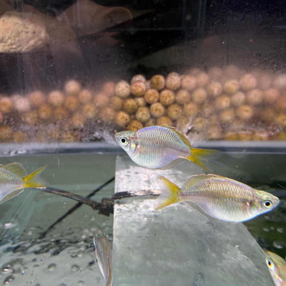 原生於澳洲北部河系,是彩虹魚中體色最鮮豔的代表之一。成熟公魚體側會呈現藍、綠、金交錯的金屬光澤,背鰭與臀鰭常帶鮮紅或橘紅色調;體型較為圓厚,因此有「圓身」之稱。當群體在中層巡游時,色彩會隨光線不斷變化,極具觀賞張力。