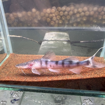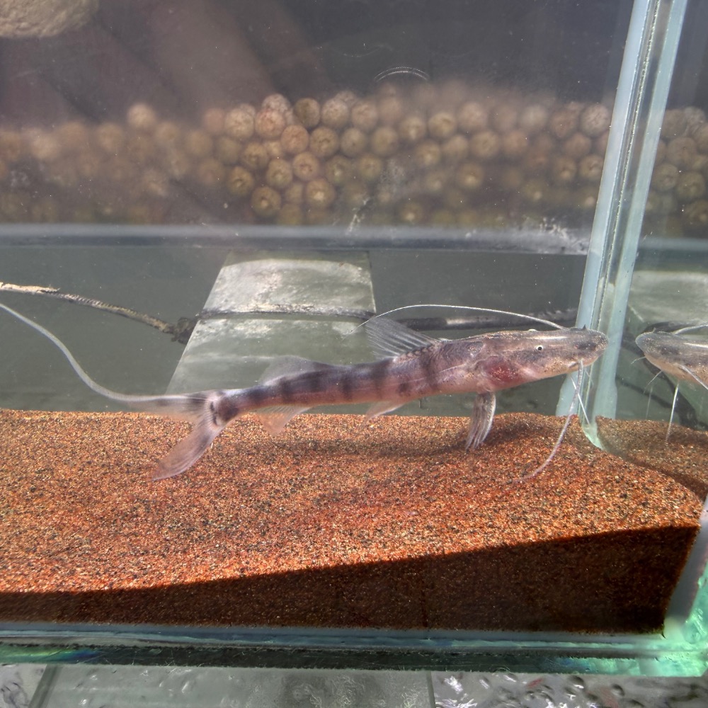 斑馬鴨嘴為南美洲大型掠食性鯰魚之一,以鮮明黑白相間條紋聞名,外觀如斑馬般極具視覺辨識度。體型修長、游速極快,具強烈掠食本能,是屬於高機動型的巨型