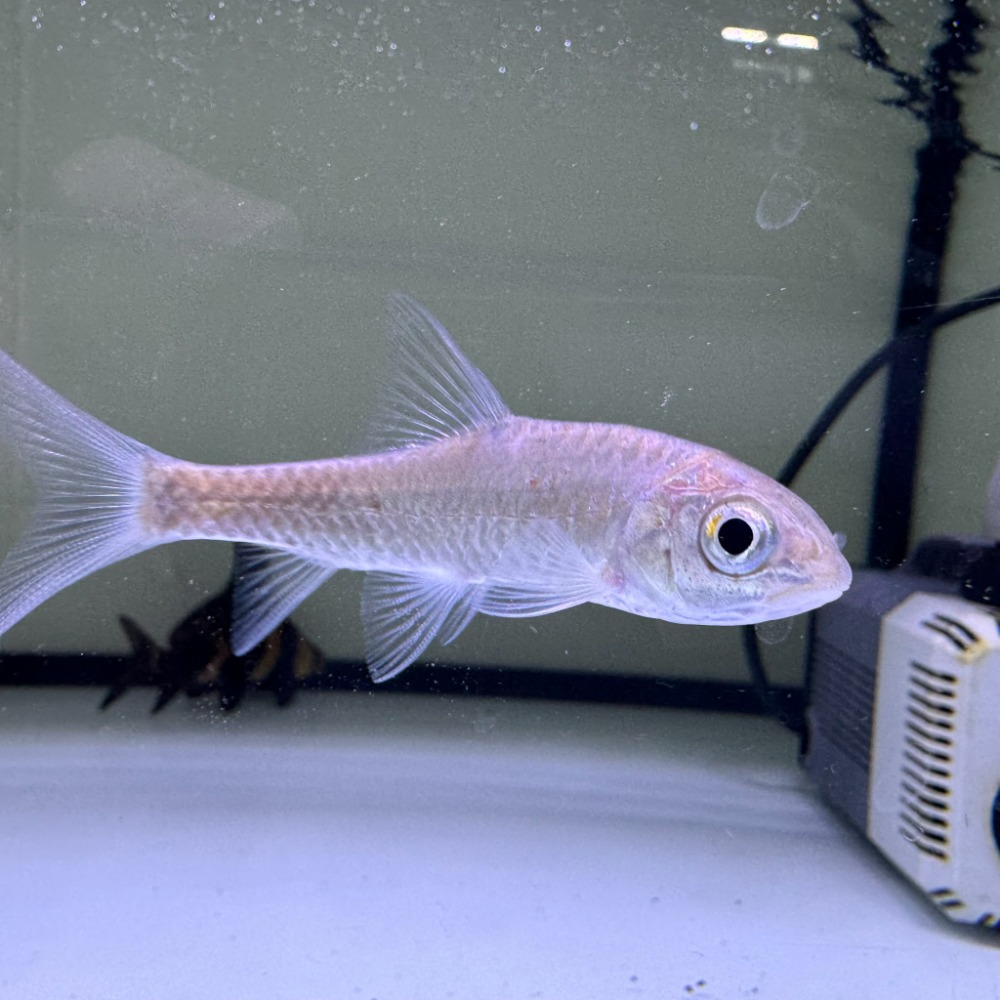 異口藍吉羅原生於東南亞山區溪流與清澈河段。體型修長如箭,體側一道深色縱帶在燈光下襯出淡淡金屬藍光,游動時速度快、隊形整齊,極具動態觀賞性。貼近岩石與急流環境活動,是典型的高溶氧溪流型魚種。