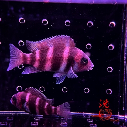 皇冠藍六間是非洲三大湖中最具代表性的慈鯛之一,身披深藍至冰藍色的優雅色調,搭配六道鮮明間紋與前額隆起的頭瘤,散發出深湖獨有的威嚴氣息。牠們以沉穩的游姿著稱,在水中緩緩滑行,有種不容忽視的王者從容。成魚體長可達 30–35 公分,是水族圈裡人氣極高的大型慈鯛代表物種。