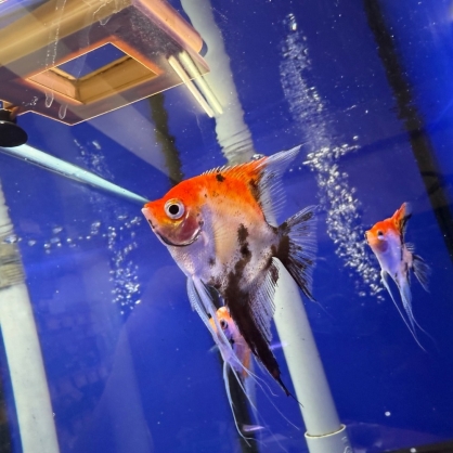 紅魔鬼神仙為神仙魚的高色階選育品系,全身覆以高飽和紅色至橘紅色澤,搭配修長背鰭與腹鰭線條,游動時宛如火焰飄舞。既保有神仙魚特有的優雅輪廓,又以強烈色彩成為缸中視覺焦點,是展示與造景缸中極具舞台感的明星品系。