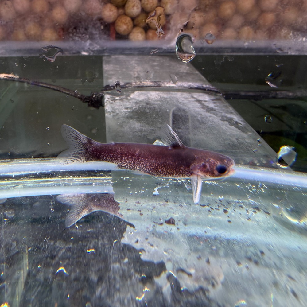 紫羅蘭豹鯨屬於小型夜行性貓魚,體色在燈光下會透出淡淡紫羅蘭光澤,搭配不規則的深色斑點,如同夜空灑落的豹紋。體態小巧、游動輕柔,白天多半躲藏於沉木與陰影中,夜晚才開始活動覓食,是極具氛圍感與觀察樂趣的精緻型觀賞貓魚。