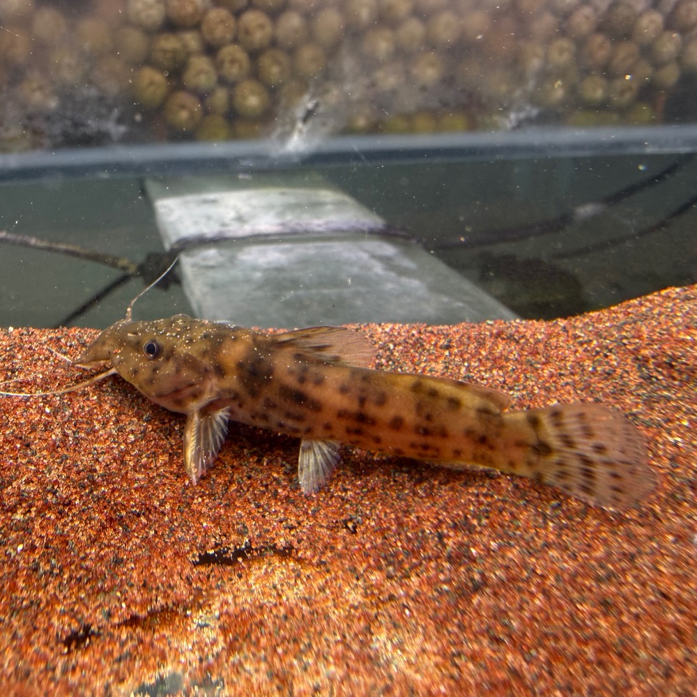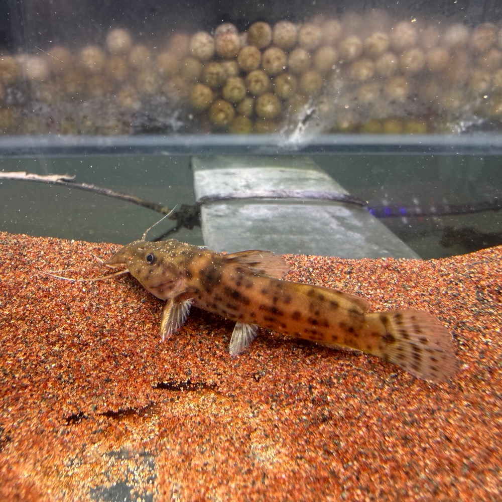 肯馬倫牛頭鴨嘴為非洲原生大型鯰魚之一,擁有極具特色的寬扁頭型與粗壯身軀,搭配長觸鬚與厚實皮膚,展現典型底棲掠食魚風格。體色多為褐色至深色系,帶有自然斑駁紋理,整體氣質粗獷原始,極具野性魅力。