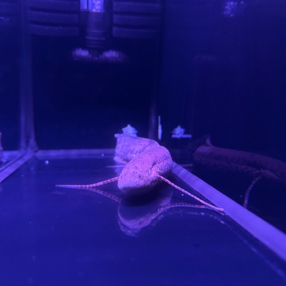 虎斑肺魚原生於非洲沼澤與季節性水域,是典型的肺魚。體表佈滿不規則虎斑斑駁,胸腹鰭細長如鬚;可直接到水面吞氣呼吸。在乾旱期甚至會鑽入泥中進入夏眠(aestivation),展現極端環境下的生存策略,原始氣息與觀察價值都非常強烈。