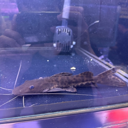 梅花鴨嘴原生於南美河系,體側佈滿不規則的梅花/玫瑰斑花紋,與沉木、底砂環境高度融合。頭型寬厚、口裂強壯,觸鬚修長;白天多半貼底靜伏,入夜後開始活動覓食。花紋大而醒目,是花紋系鴨嘴中辨識度極高的代表種。