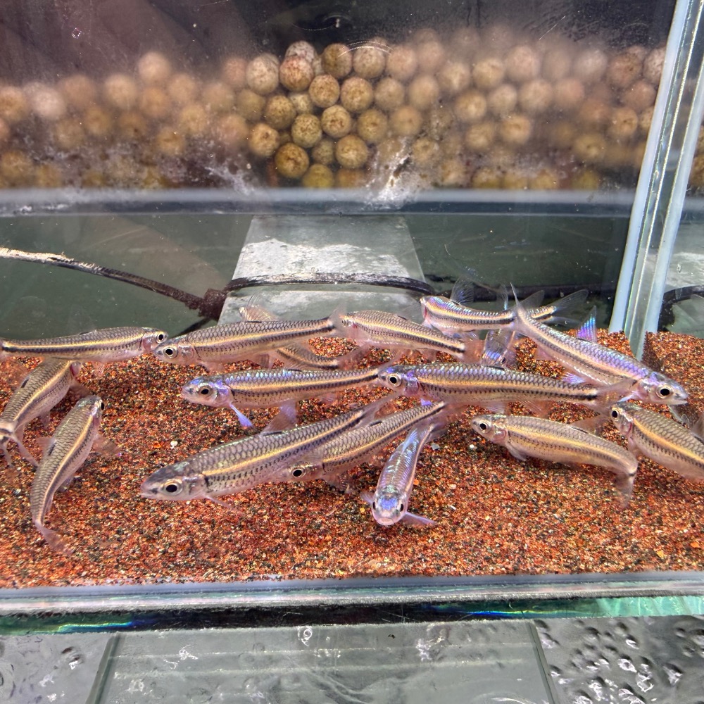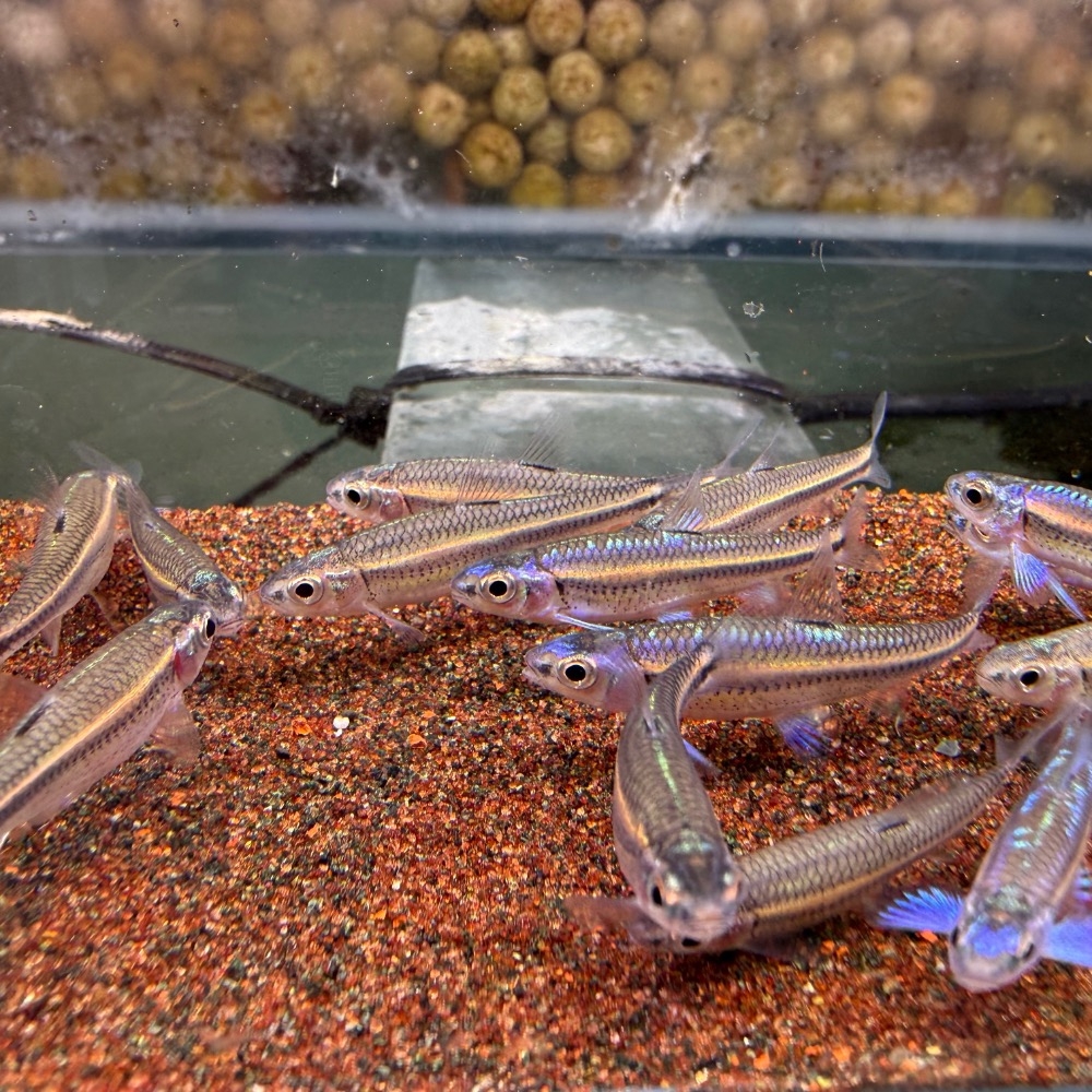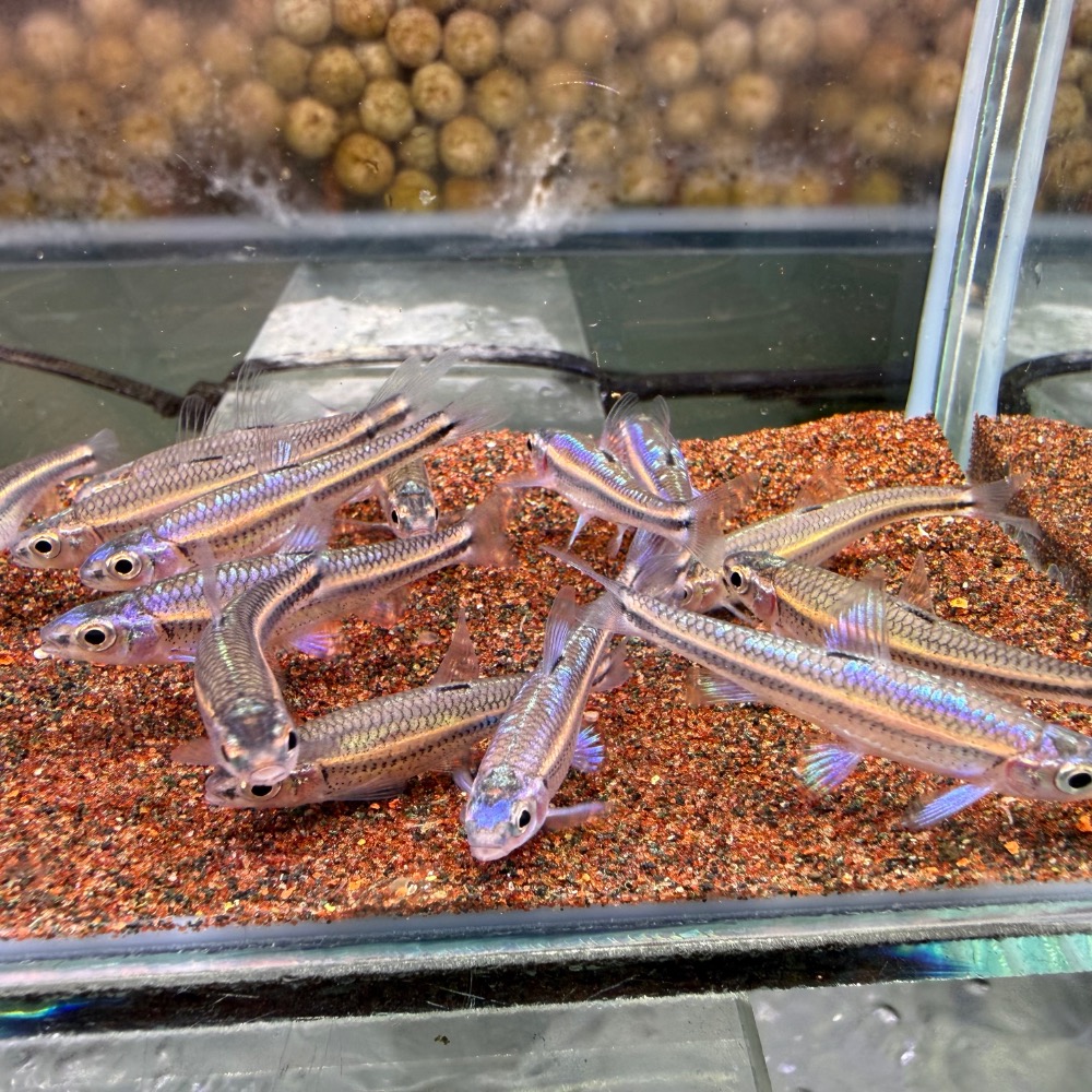 多彩霓虹原生於北美洲溪流水域,是冷水系小型魚中的高人氣代表。體側具有鮮明的藍色光帶,繁殖期會轉為紅、粉、紫等多層次色彩,整體如霓虹燈般閃耀。群游時色彩交錯流動,觀賞效果極為出色。