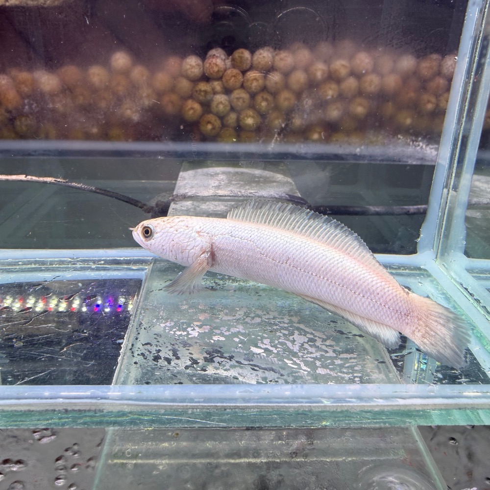 白金香蕉雷龍為香蕉雷龍的白化/白金表現型,整體呈現乳白至淡金色澤,質感乾淨純粹。體型修長、線條流暢,搭配雷龍特有的靜伏與爆發行為,展現低調卻強烈的視覺張力,是兼具稀有性與觀賞性的特色品種。